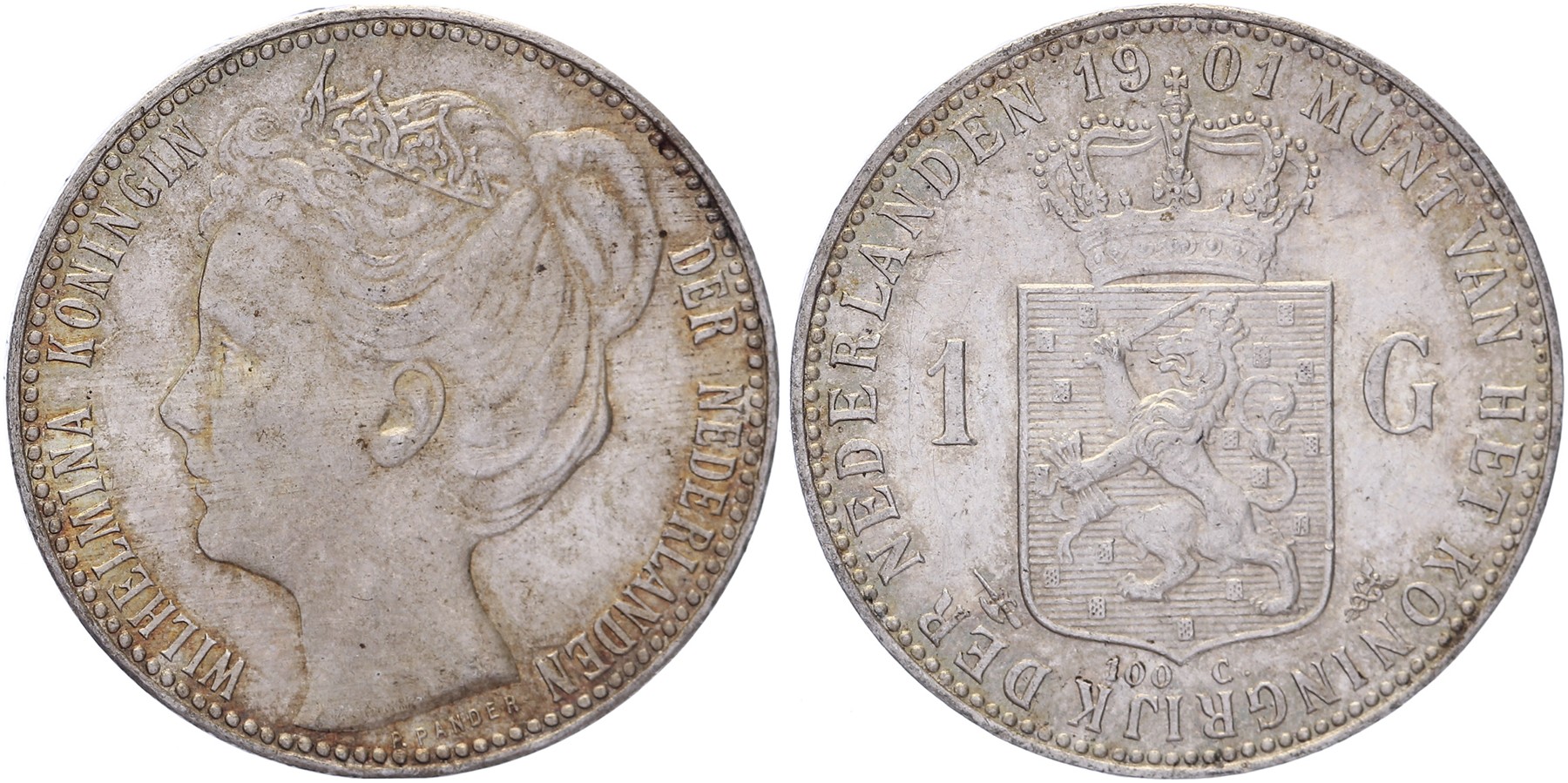 1 Gulden 1901 mmt. hellebaard Sch. 803 Zeer fraai / Prachtig