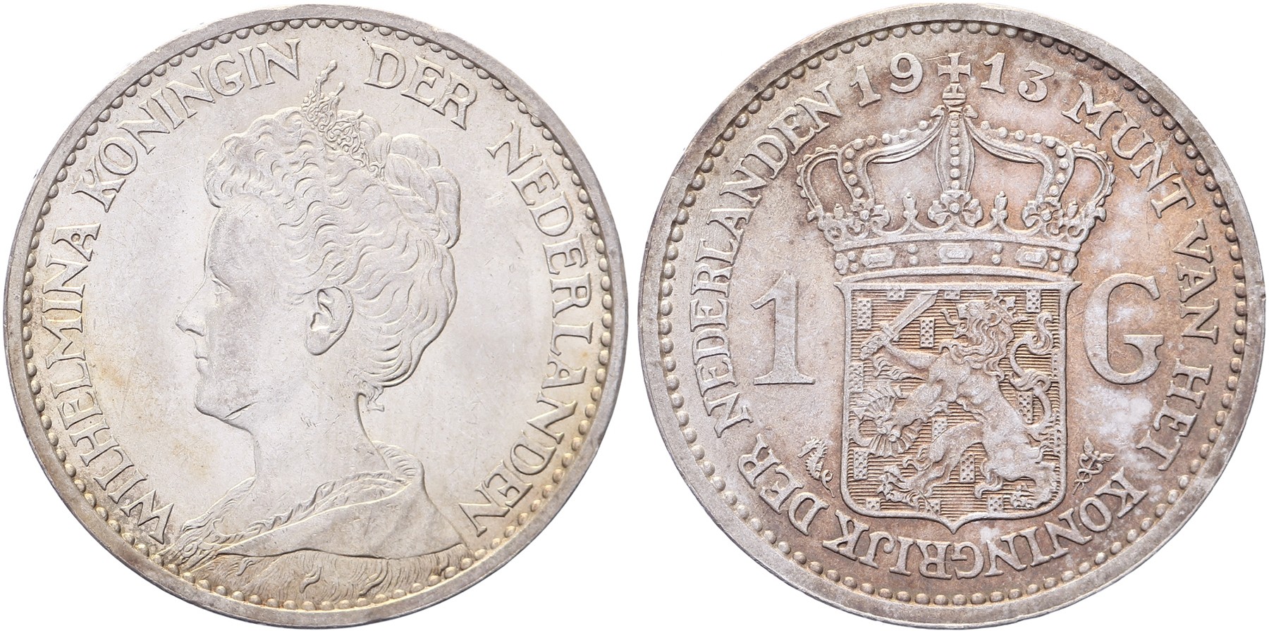 1 Gulden 1913 mmt. zeepaard Sch. 815. Mooie kleur! Ruim prachtig