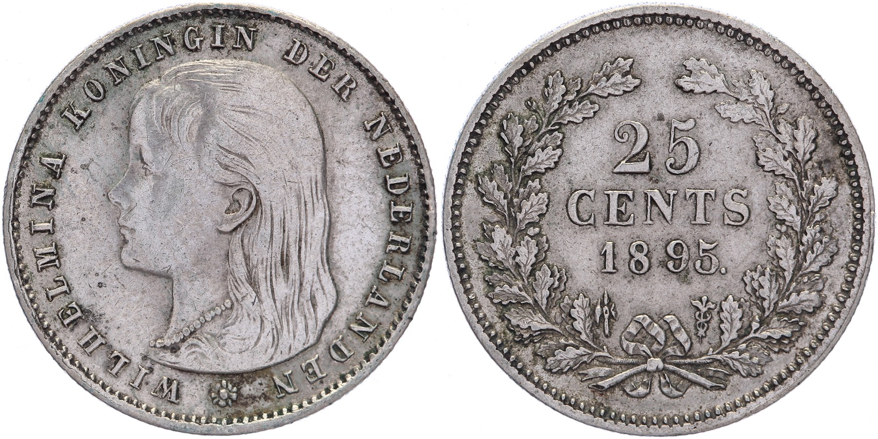 25 Cents 1895 mmt. hellebaard Sch. 850 Zeer fraai