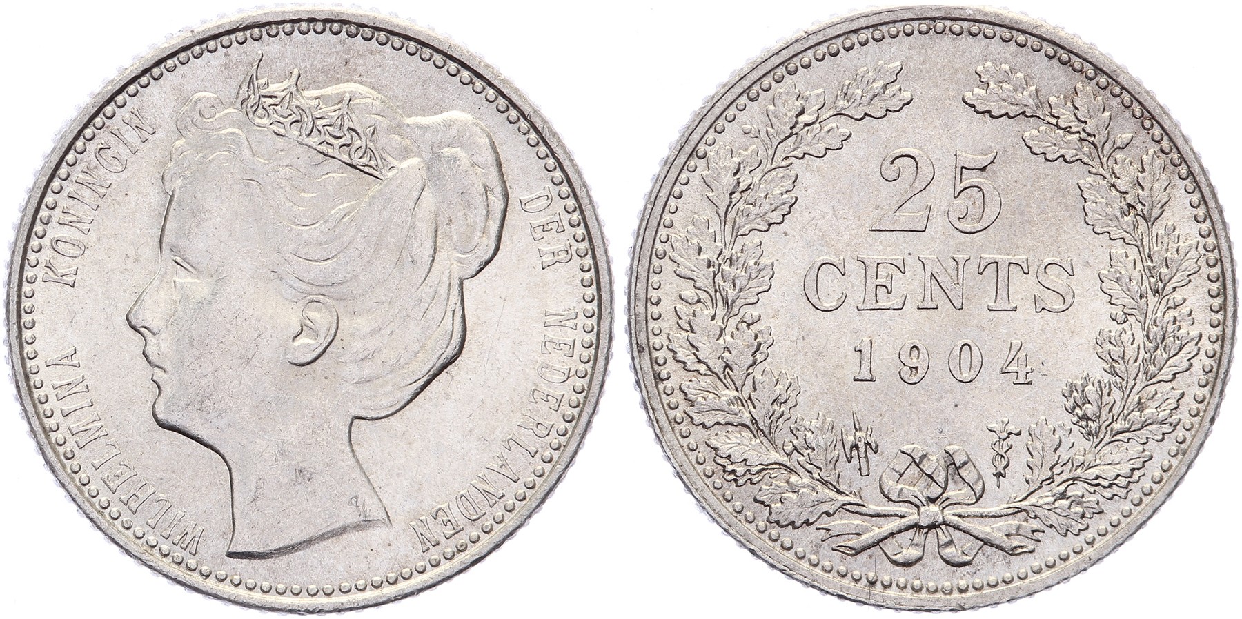 25 Cents 1904 mmt. hellebaard Sch. 857. Mooie kleur! Prachtig / FDC