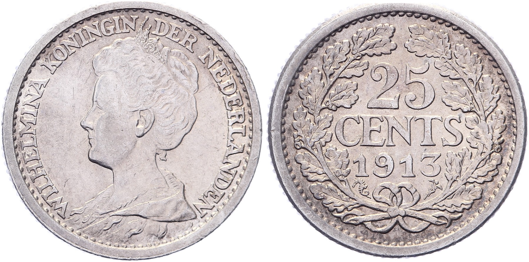 25 Cents 1913 mmt. zeepaardje Sch. 863 Vrijwel prachtig
