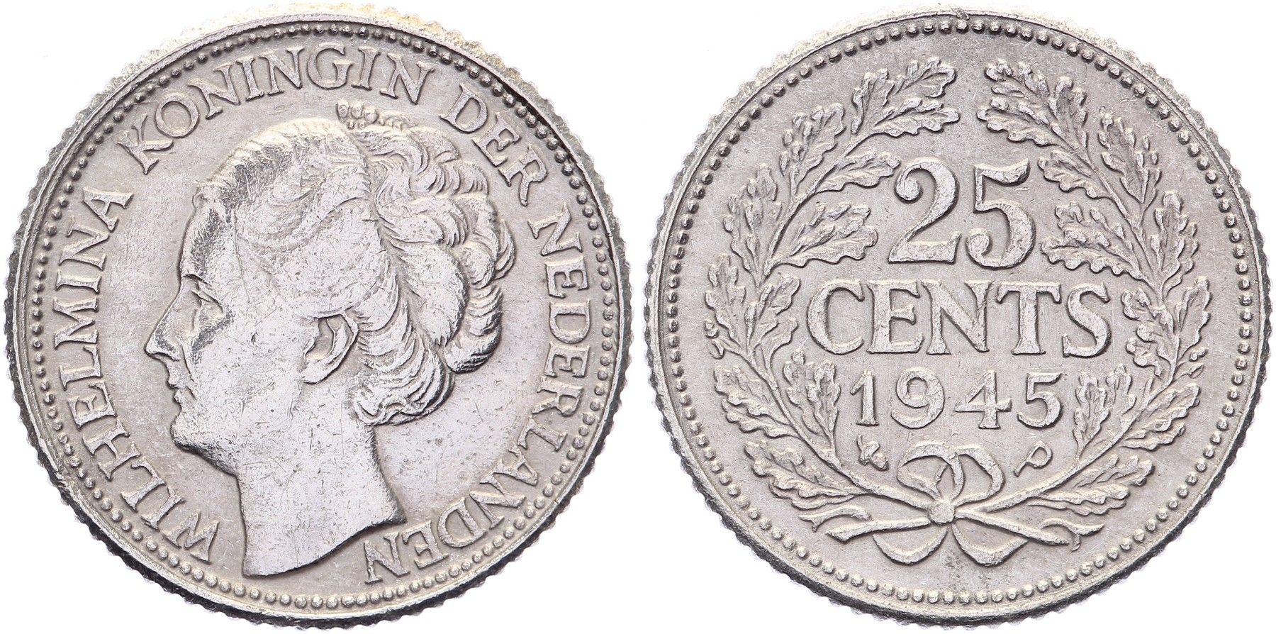 25 Cents 1945P mmt. eikel Sch. 1058 Ruim prachtig