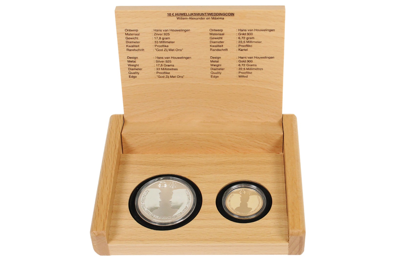 Gouden 10 euro 2002 incl. 10 euro zilver (set). Oplage 10.119. Proof in cassette.