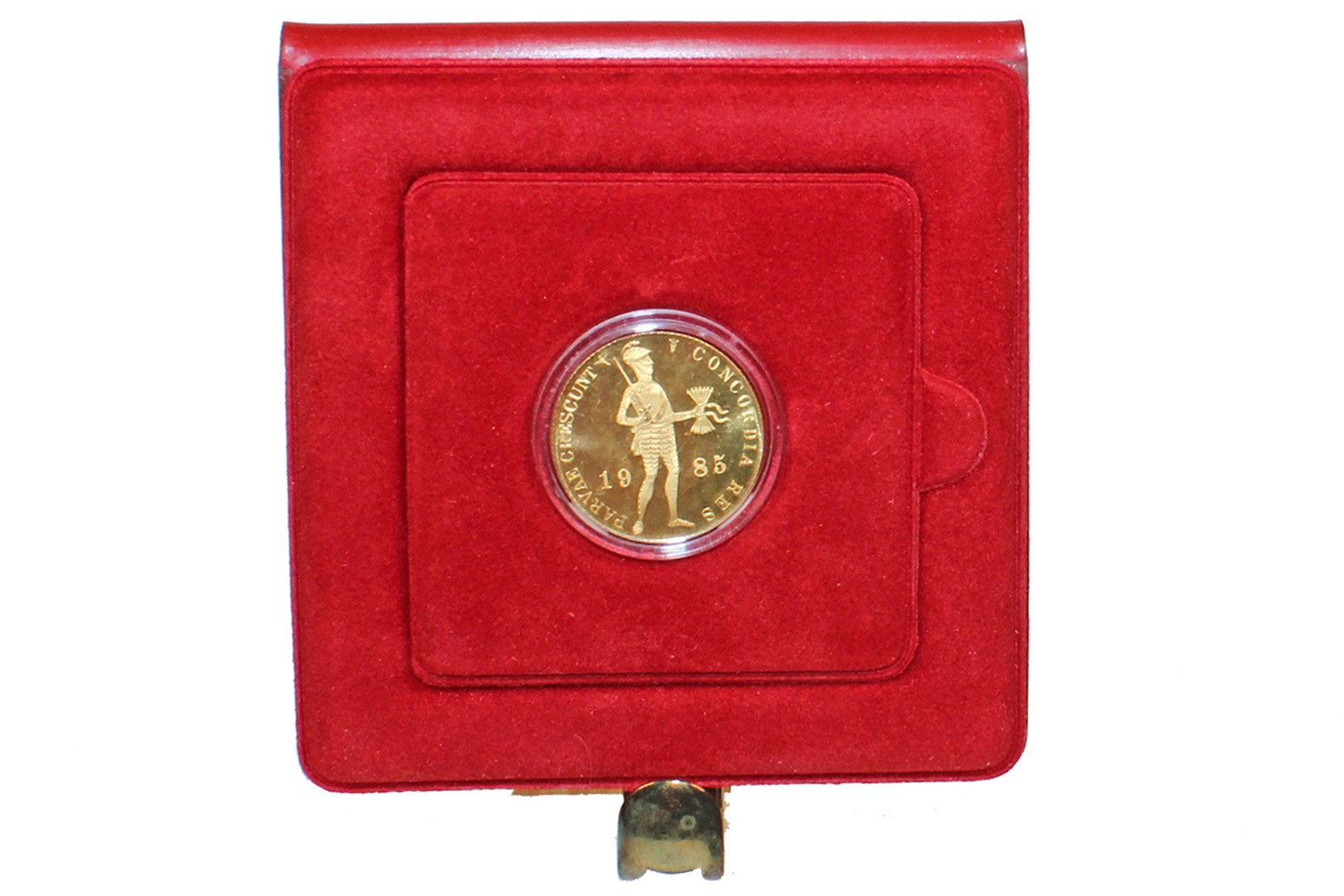 Gouden dukaat 1985. Oplage 103.863. Proof in cassette.