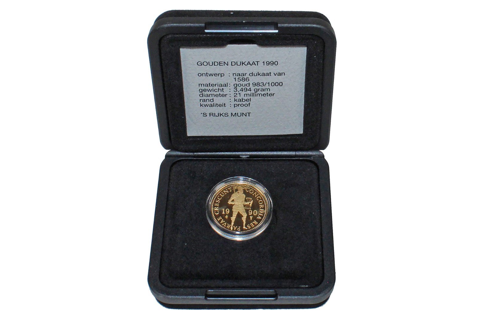 Gouden dukaat 1990. Oplage 17.500. Proof in cassette.