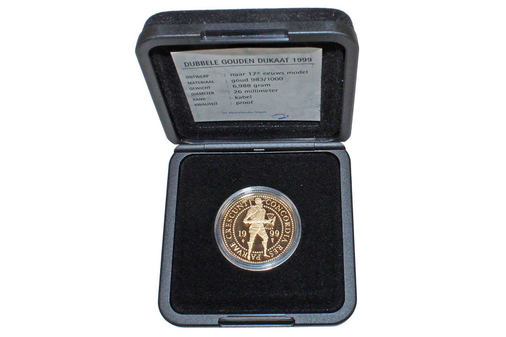 Dubbele gouden dukaat 1999. Oplage 6.250. Proof in cassette.