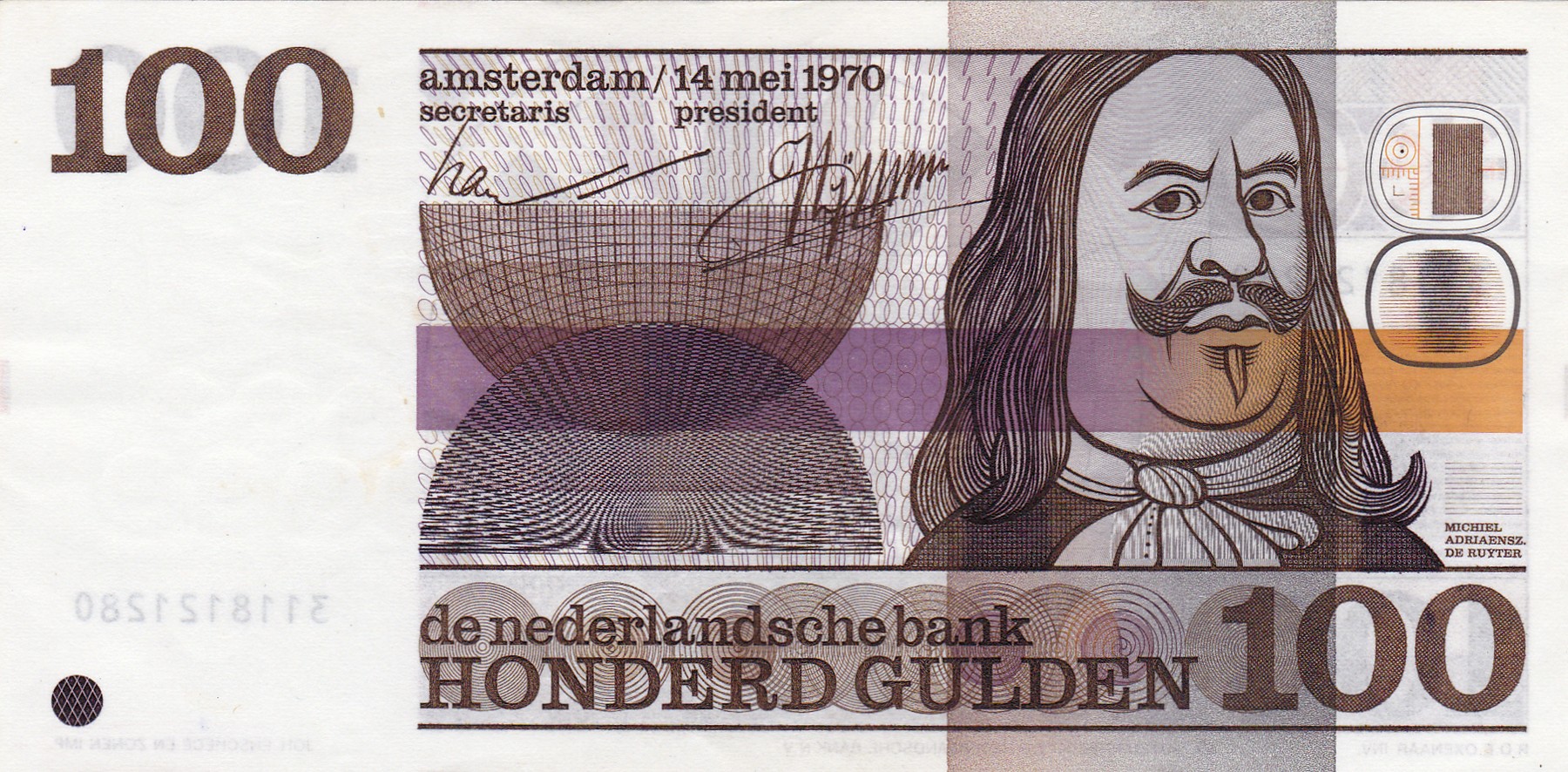 100 Gulden 1970 de Ruyter. Mev. 122-1; AV 86.1b.1; PL 103b [# 3118121280]. Unc.