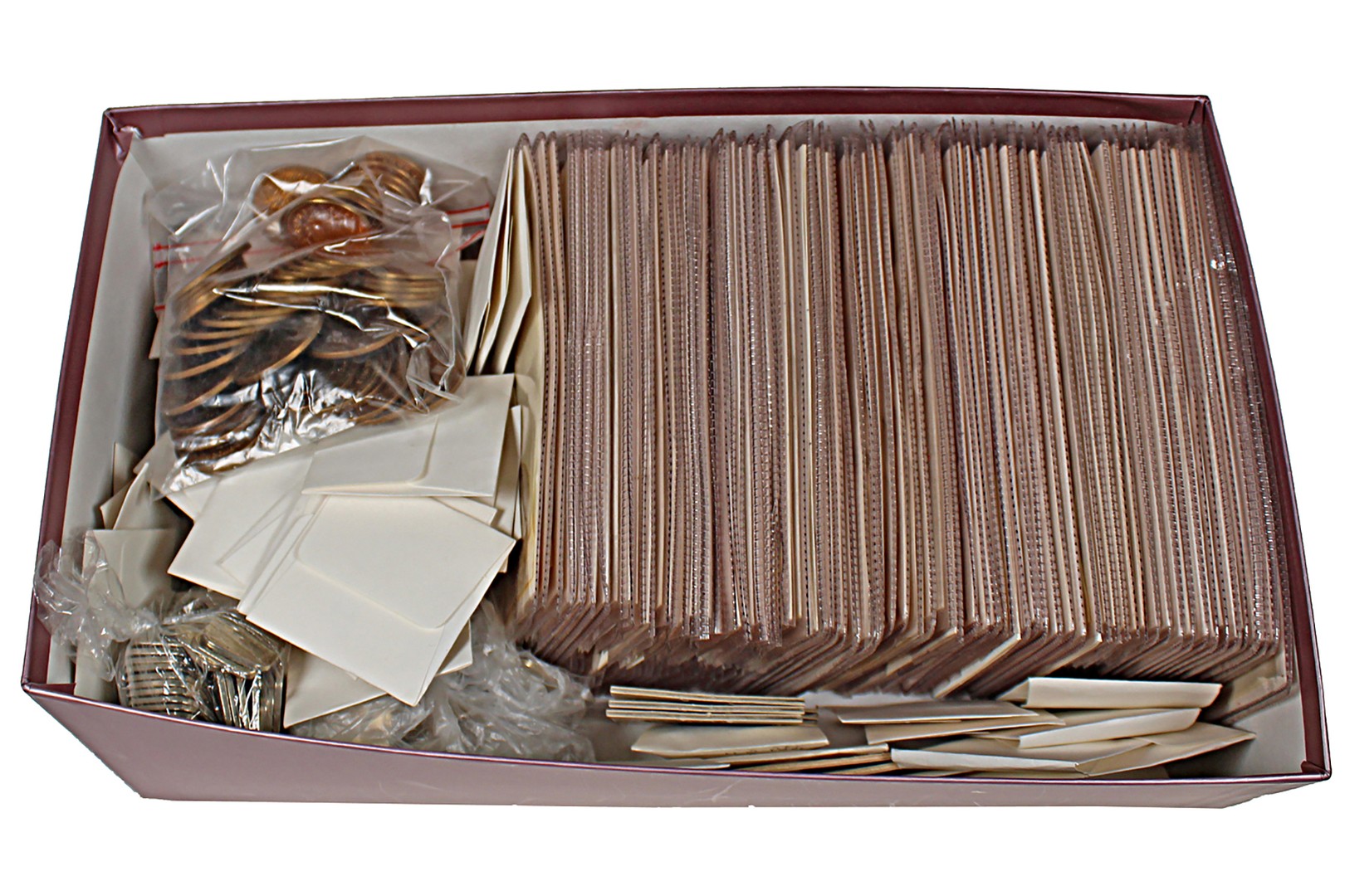 Doos met ruim 8 kg. divers eenvoudig penningspul. O.a. Heerde, Westervoort en Surhuisterveen.