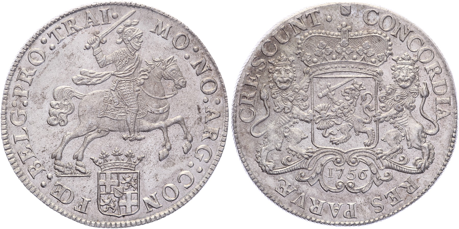 Rijder of dukaton 1756, met kabelrand. Delm. 1031; CNM 2.43.101; HPM 59. Kwalitatieve topper! Stempelglans / FDC.