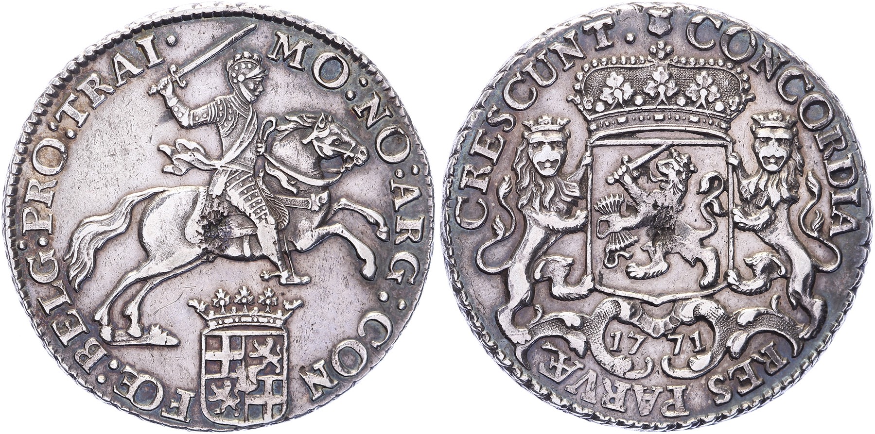 ½ Rijder of ½ dukaton 1771. Delm. 1055; CNM 2.43.106; HPM 60. Gepoetst, gietgal. Zeer fraai.