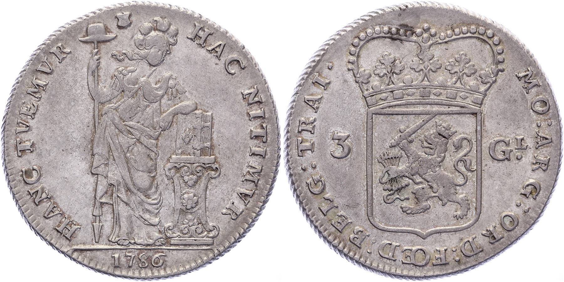 3 Gulden 1786. Delm. 1150; CNM 2.43.117; HPM 71. Zeer fraai.