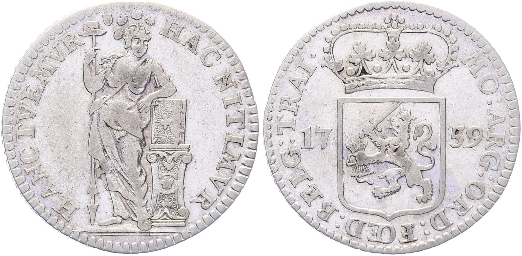¼ Gulden of muntmeesterspenning 1759. CNM 2.43.126; HPM 76. Zeer fraai.