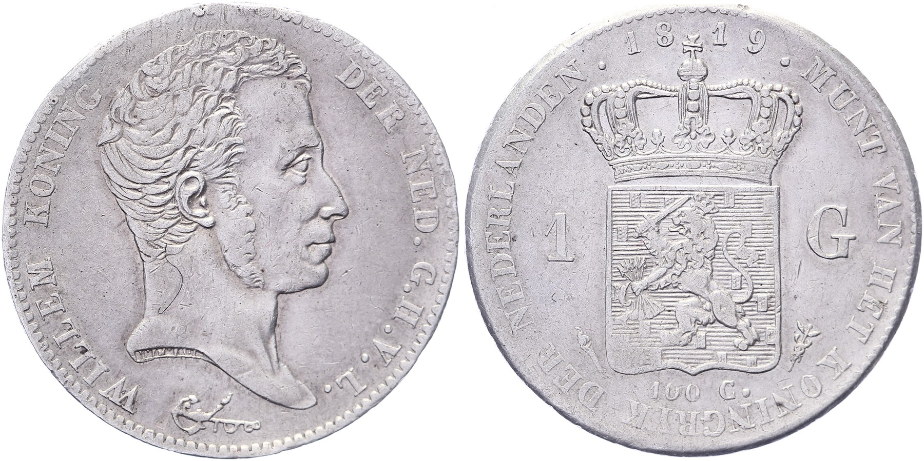 1 Gulden 1819 Utrecht mmt. fakkel Sch. 259 Bijna zeer fraai