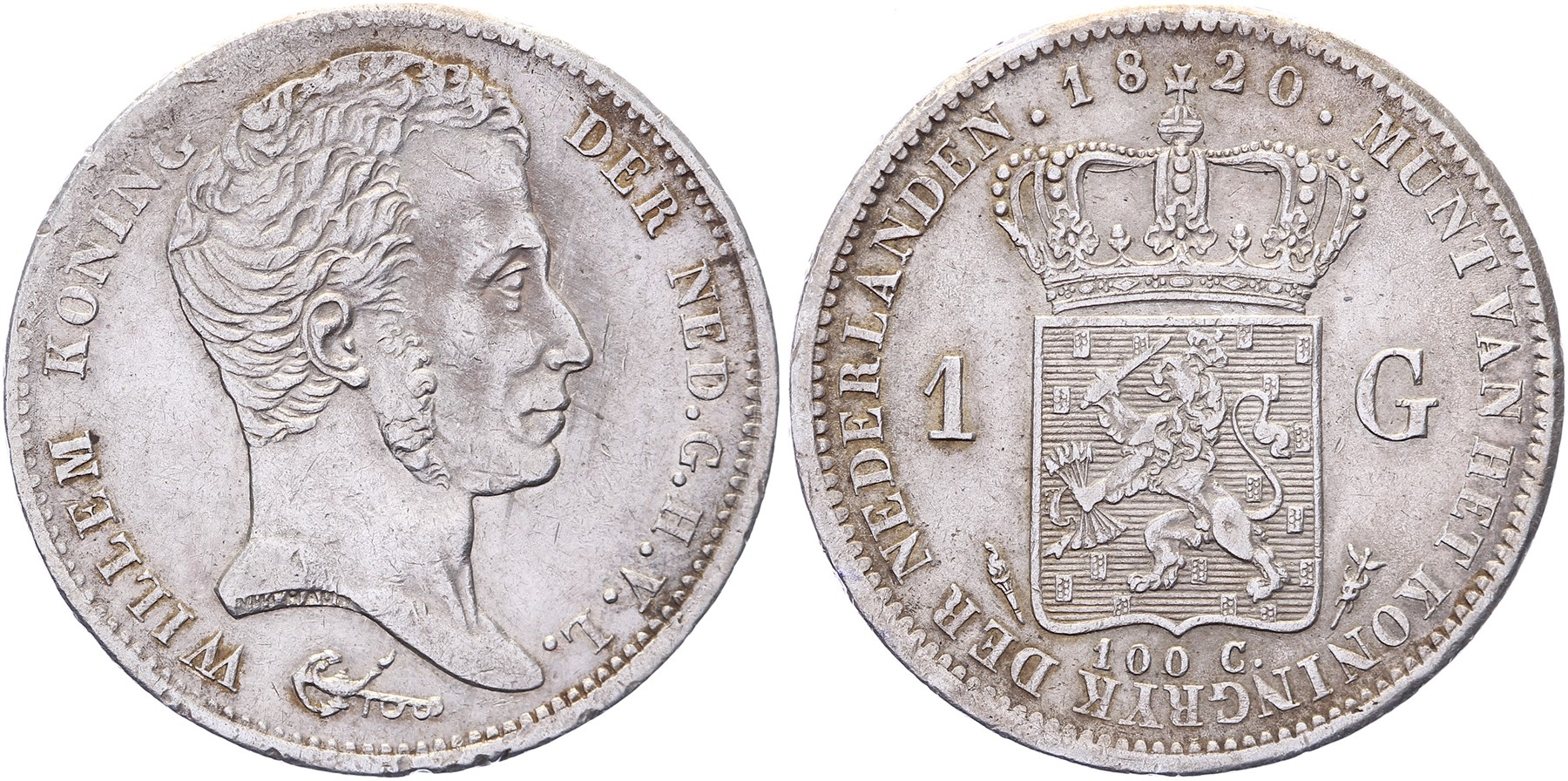 1 Gulden 1820 Utrecht mmt. fakkel Sch. 260 Zeer fraai