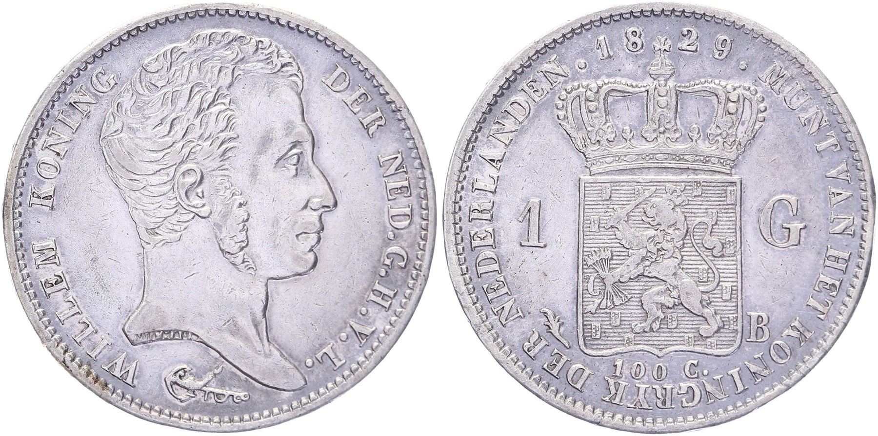 1 Gulden 1829 Brussel mmt. palmtak Sch. 271. Iets opgewreven Zeer fraai / Prachtig