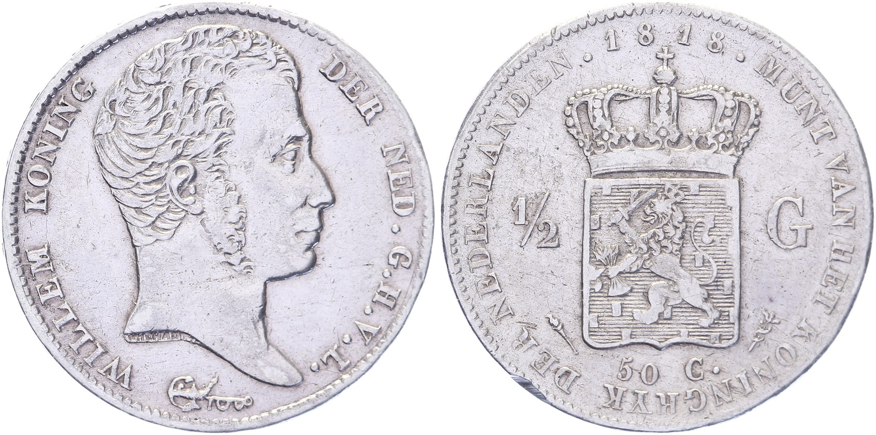 ½ Gulden 1818 Utrecht mmt. fakkel Sch. 279. Tikje in rand Ruim zeer fraai