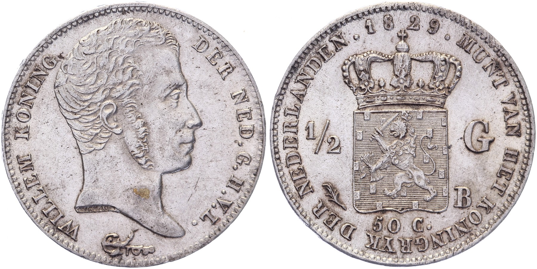 ½ Gulden 1829 Brussel mmt. palmtak Sch. 282 Zeer fraai / Prachtig