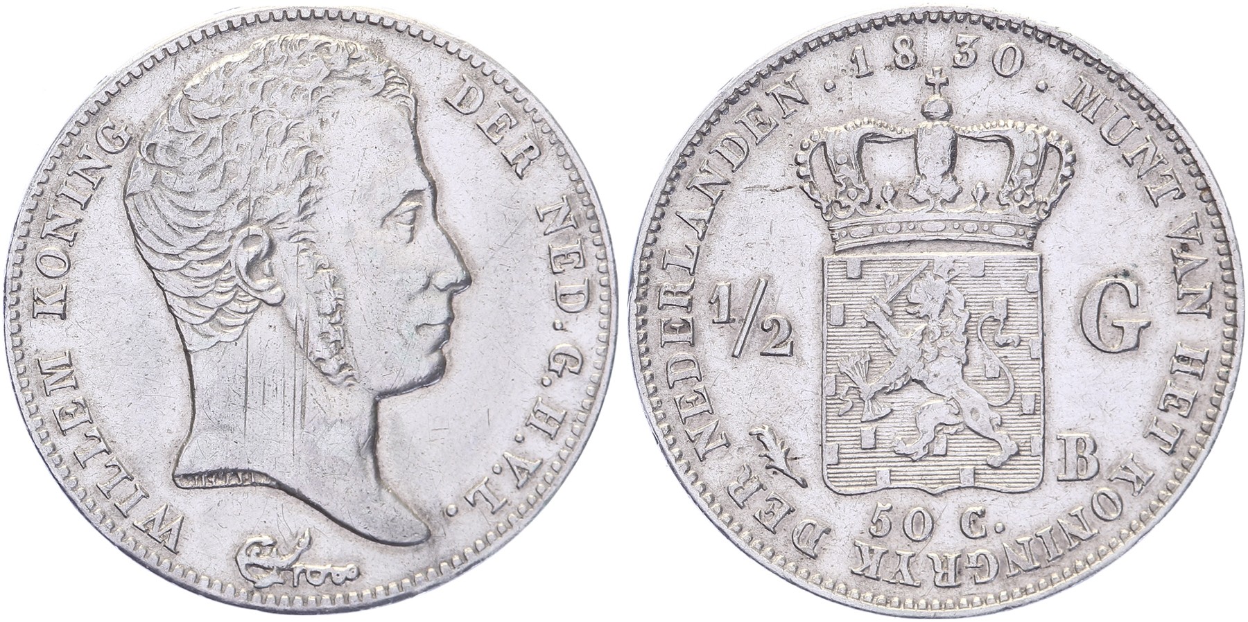 ½ Gulden 1830 Brussel mmt. palmtak Sch. 283. Justeerspoor Ruim zeer fraai