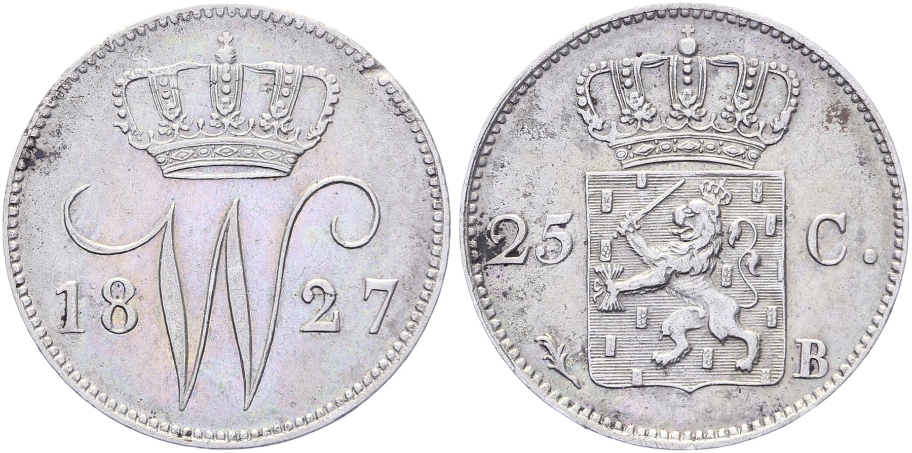 25 Cents 1827 Brussel mmt. palmtak Sch. 298. Iets vlekkerig, hakje in rand Vrijwel zeer fraai