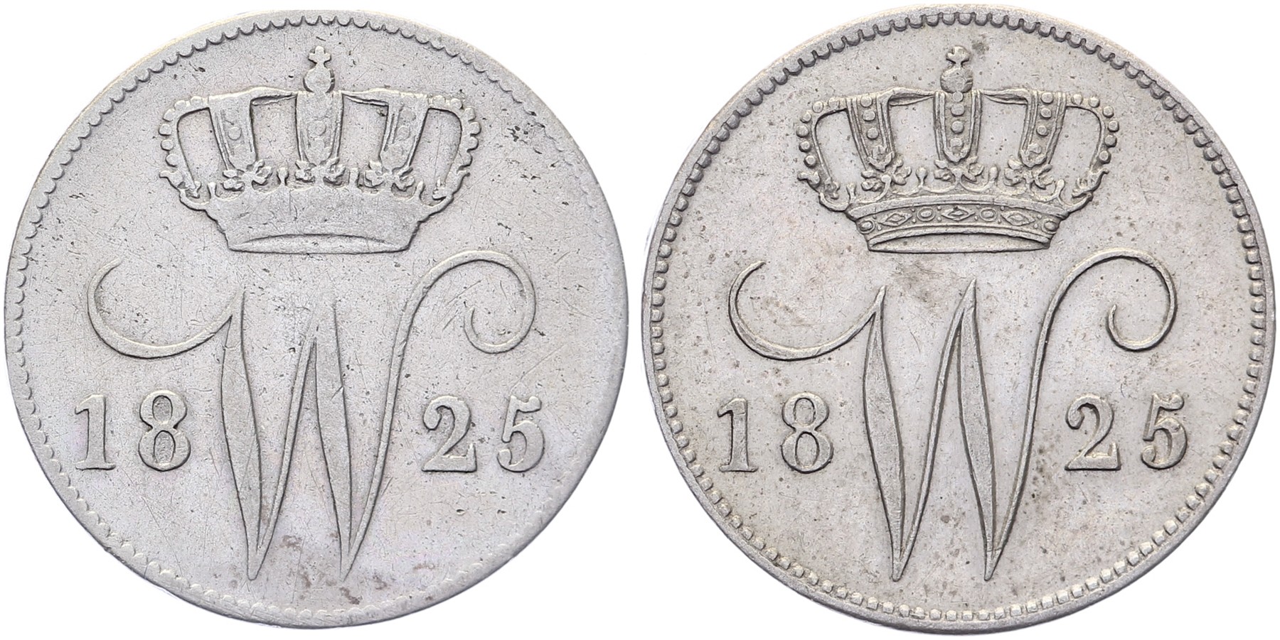 Lot (2) 25 Cents 1825 Utrecht en 1825 Brussel Sch. 289 en 290 Fraai / Zeer fraai
