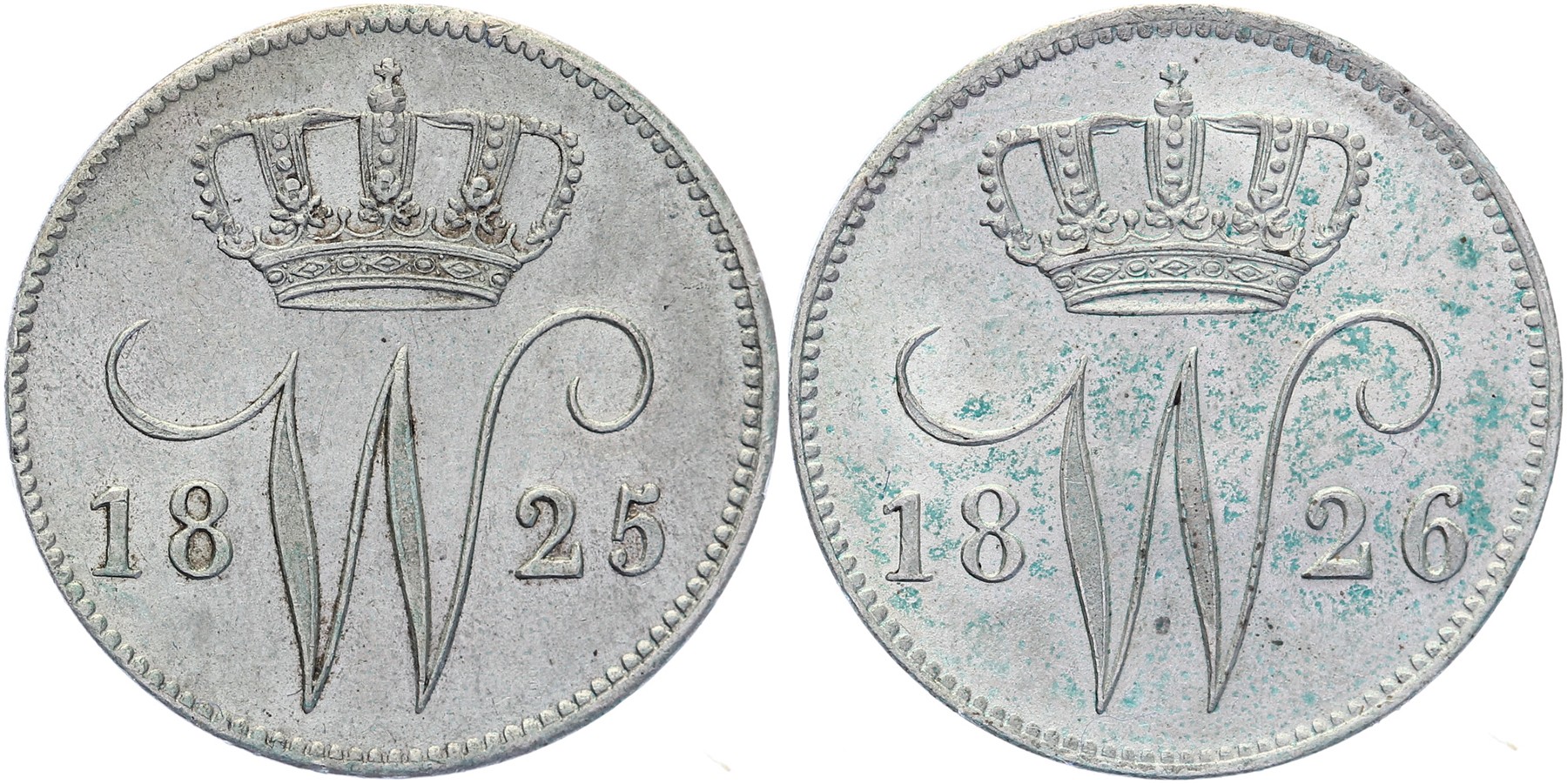 Lot (2) 25 Cents 1825 en 1826 Utrecht Sch. 289 en 290 Prachtig
