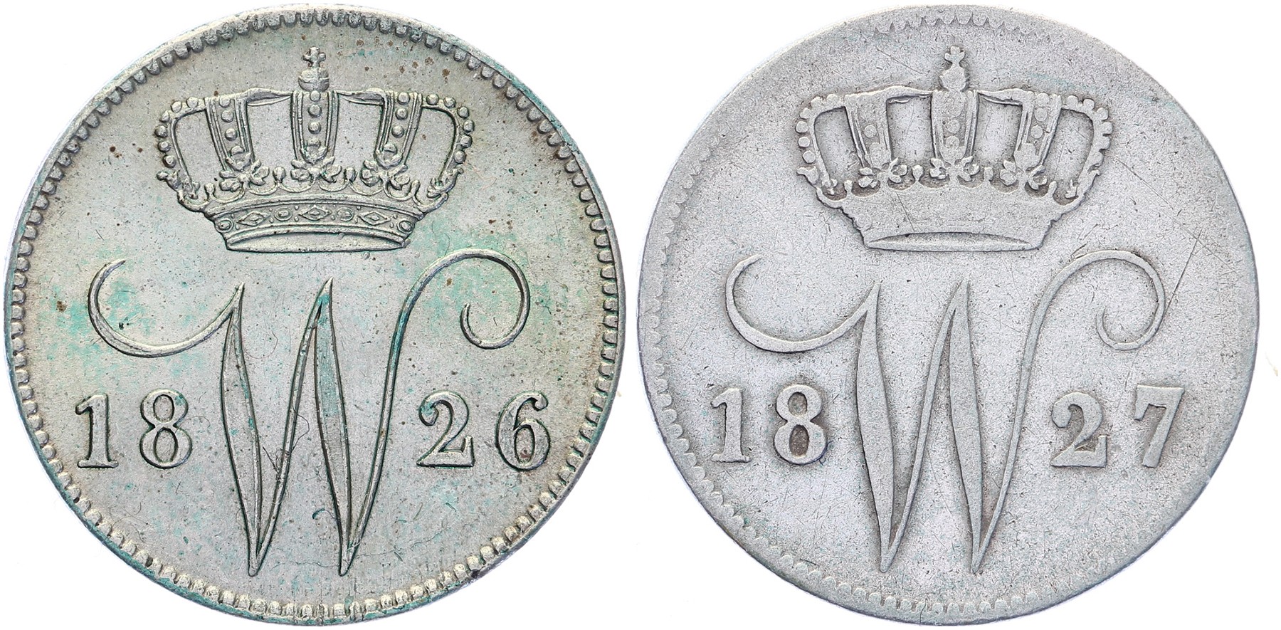 Lot (2) 25 Cents 1826 en 1827 Brussel Sch. 297 en 298 Zeer fraai en beter