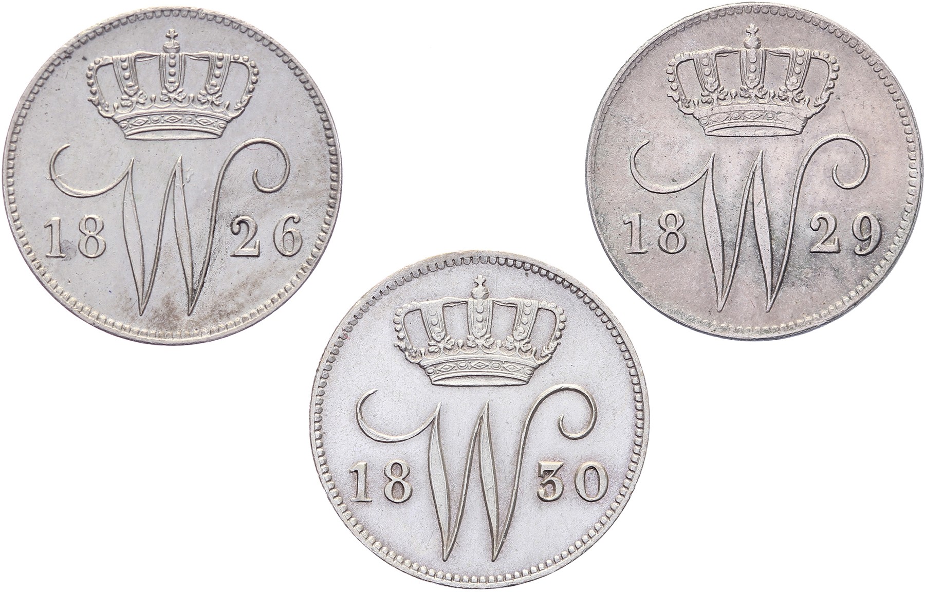 Lot (3) 25 Cents 1826 B, 1829 B, 1830 U Sch. 297, 300, 292 Zeer fraai en beter