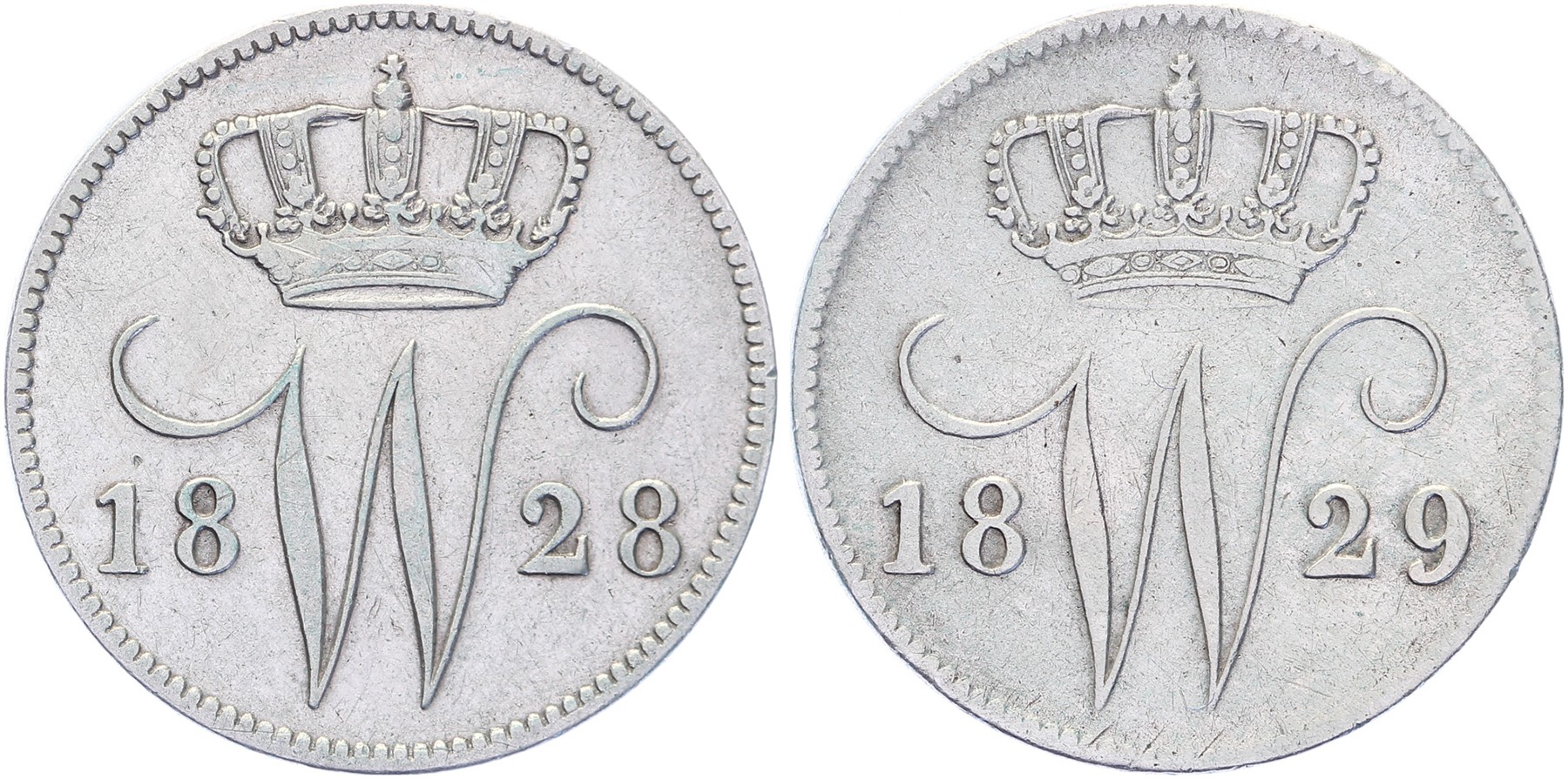 Lot (2) 25 Cents 1828 en 1829 Brussel Sch. 299 en 300 Zeer fraai