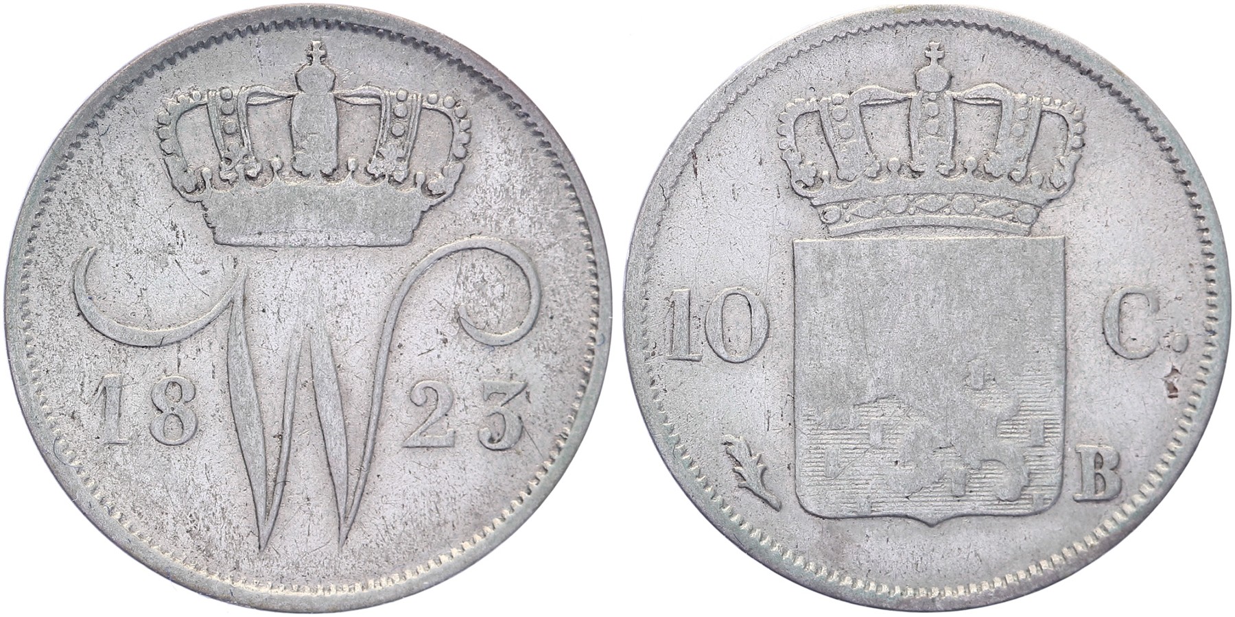 10 Cents 1823 Brussel mmt. palmtak Sch. 309 Ruim fraai