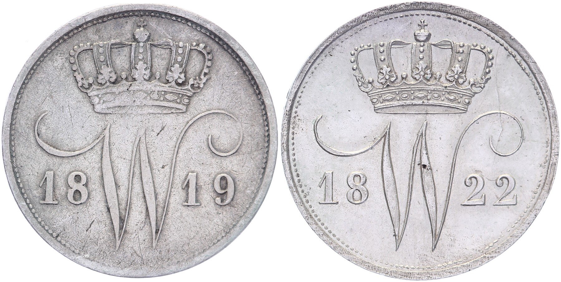 Lot (2) 10 Cents 1819 en 1822 Utrecht Sch. 303 en 304 Fraai en beter
