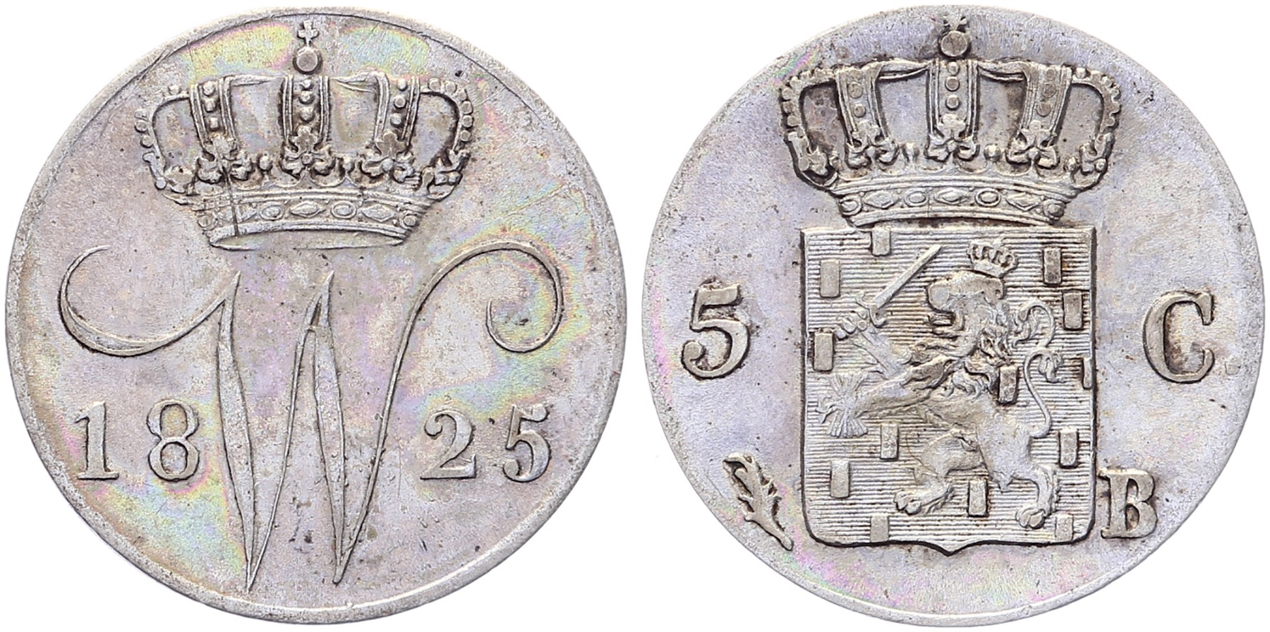5 Cents 1825 Brussel mmt. palmtak Sch. 318. Licht patina Vrijwel prachtig
