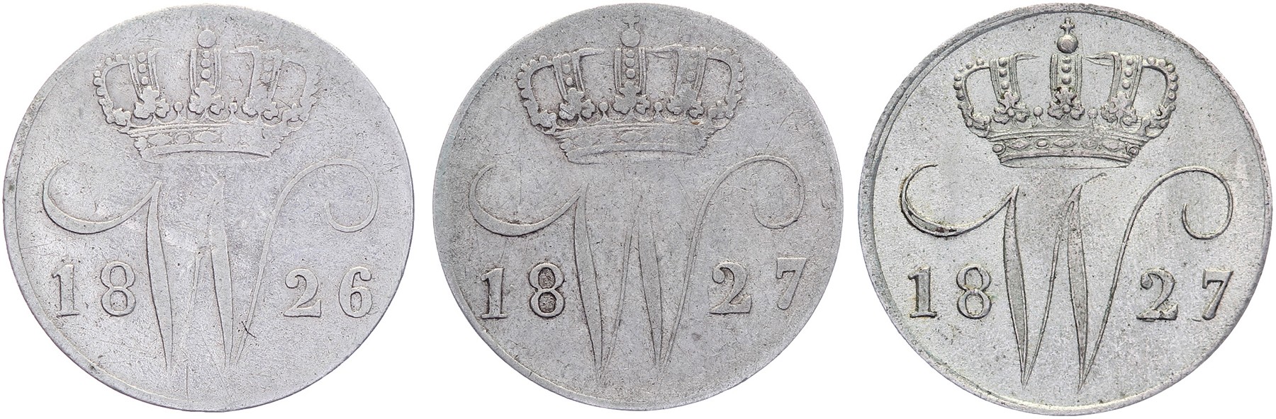 Lot (3) 5 Cents 1826 en 1827 B, 5 Cents 1827 U Sch. 319, 317 en 320 Fraai / Zeer fraai