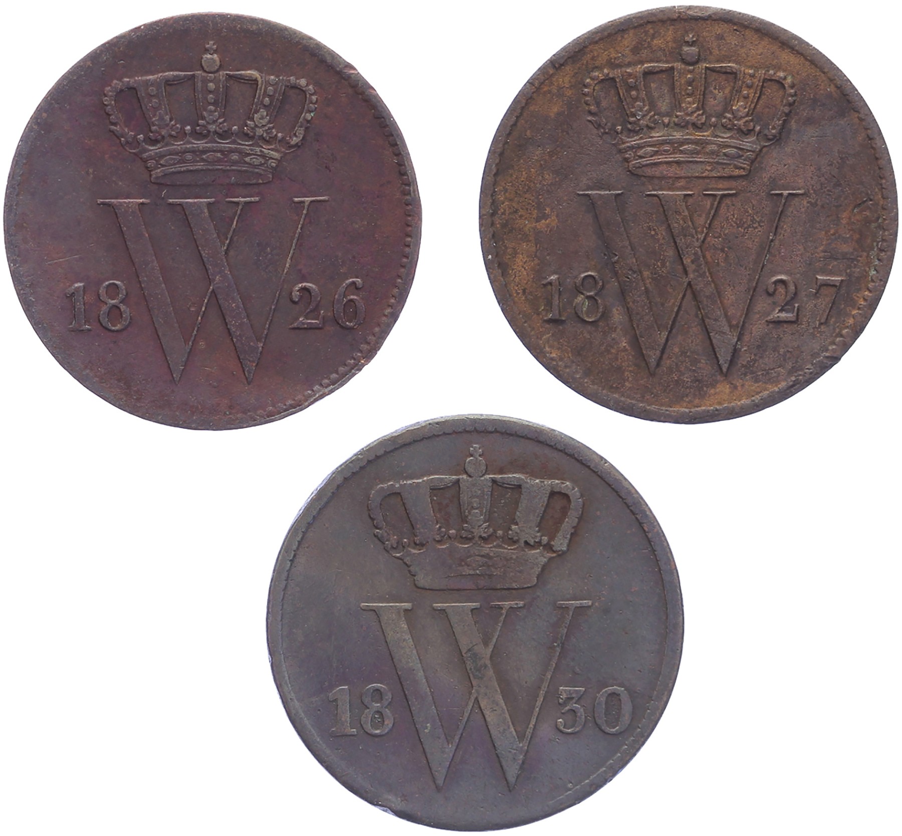 Lot (3) 1 Cent 1826, 1827 en 1830 Utrecht Sch. 329, 330 en 333 Zeer fraai.