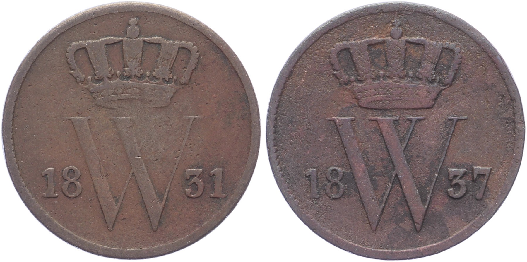 Lot (2) 1 Cent 1831 en 1837 Sch. 334 en 336 Bijna zeer fraai