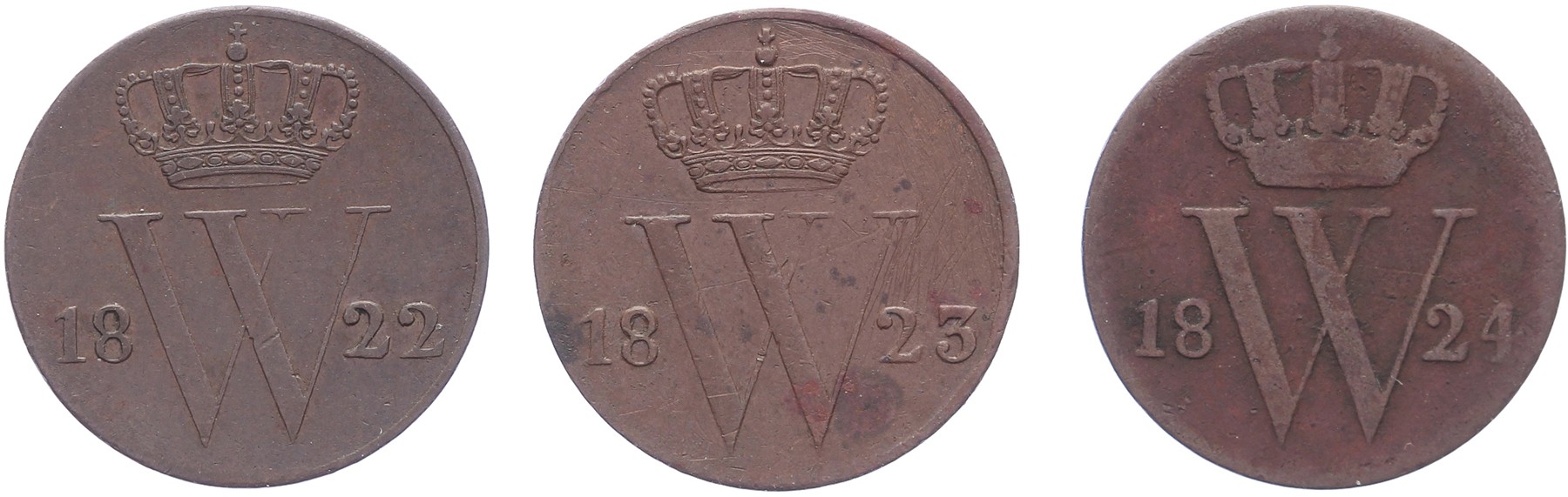 Lot (3) ½ Cent 1822 U, 1823 U en 1824 U Sch. 353, 354 en 355 Fraai / Zeer fraai