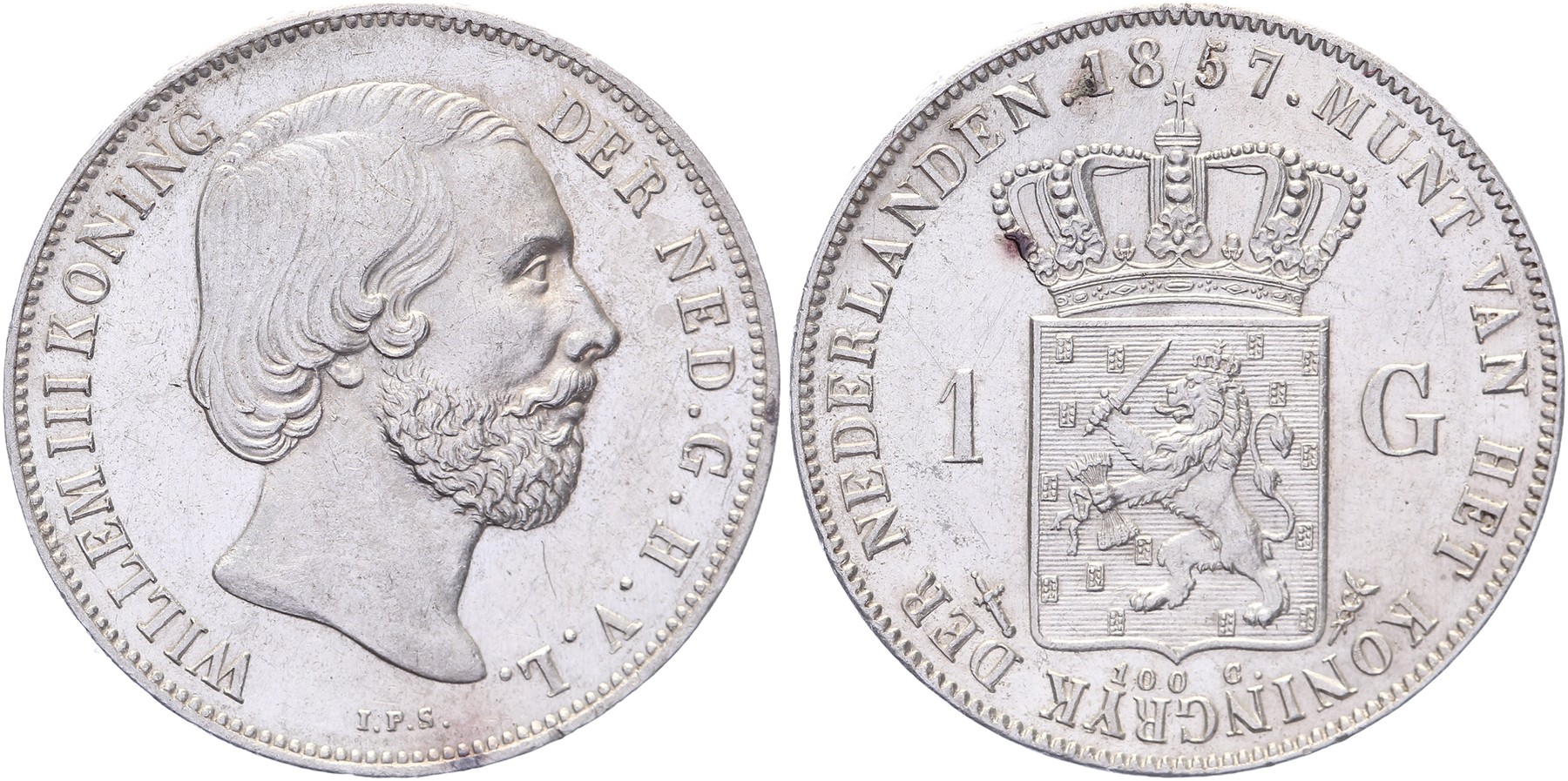 1 Gulden 1857 mmt. zwaard Sch. 610 Ruim prachtig