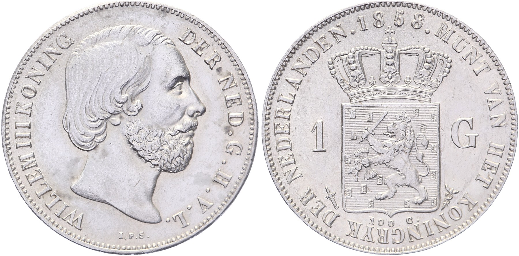 1 Gulden 1858 mmt. zwaard Sch. 611 Ruim pr. / Bijna FDC