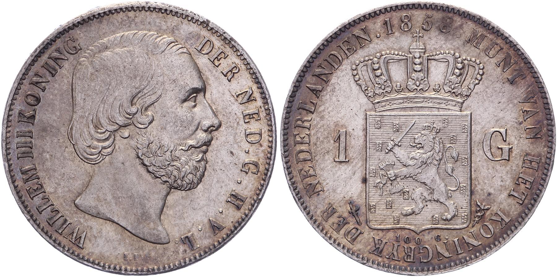 1 Gulden 1858 mmt. zwaard Sch. 611. Mooie kleur Prachtig