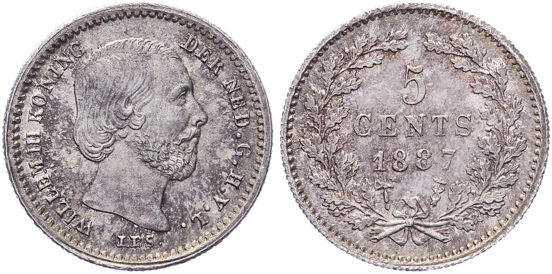 5 Cents 1887 mmt. zwaard Sch. 676. Mooi patina FDC