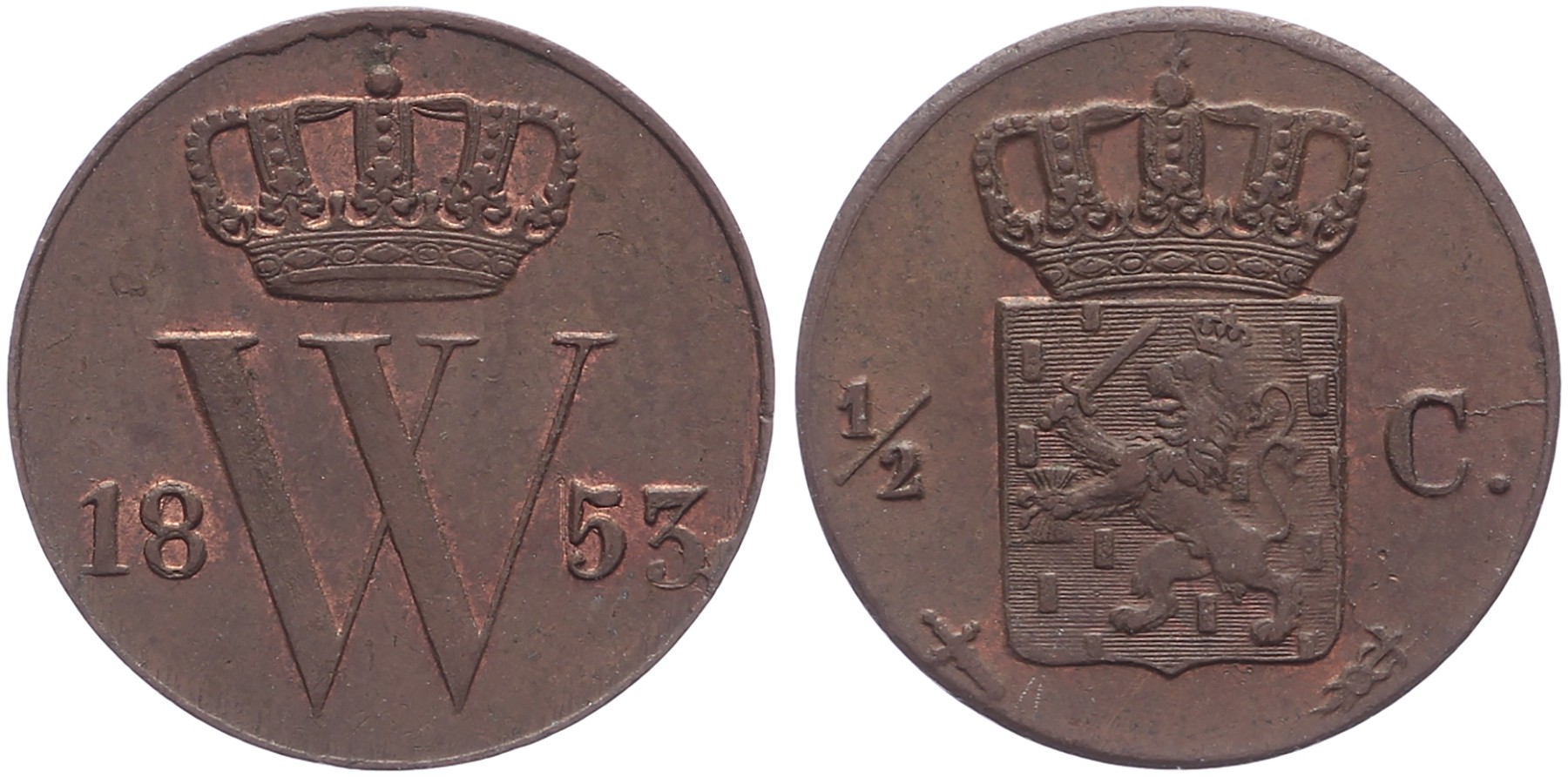 ½ Cent 1853 mmt. zwaard Sch. 706. Mooie kleur Prachtig / FDC