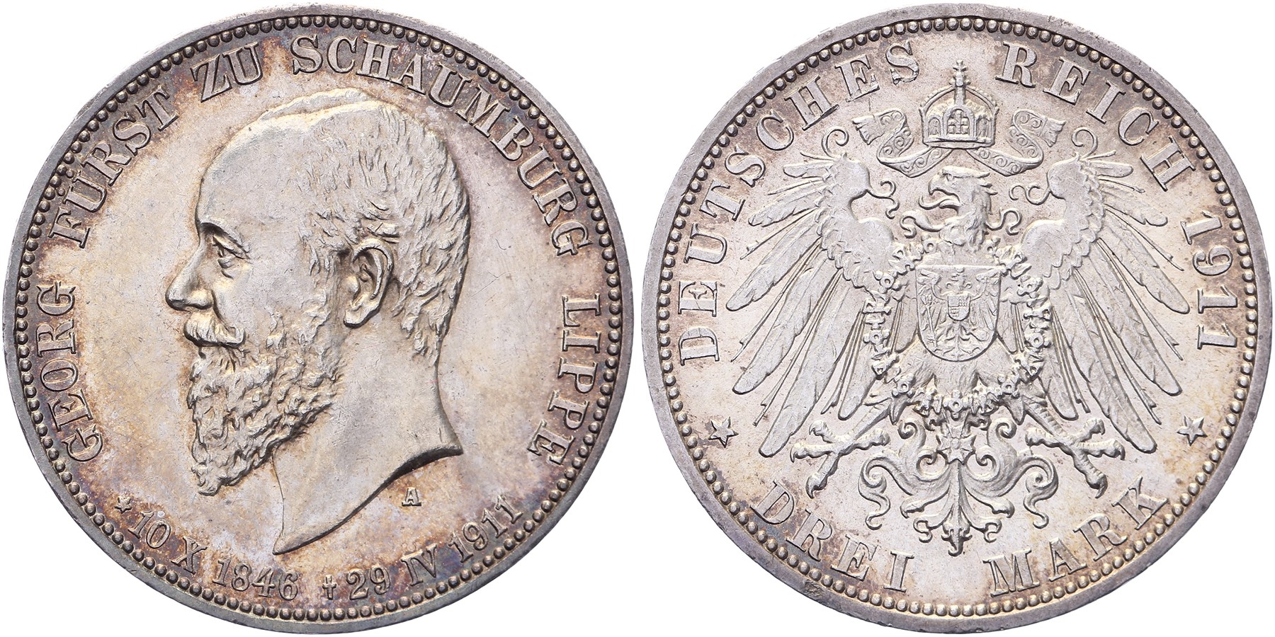3 Mark 1911. Auf den Tod des Fürsten. AKS 24; KM 55. Unzirkuliert.