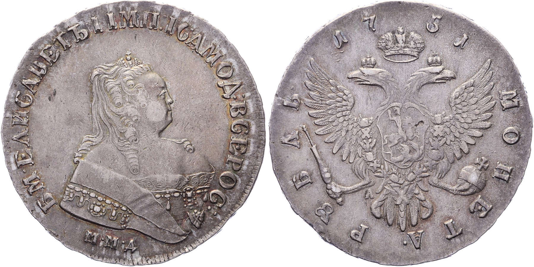 Rouble 1751 MMA. Dav. 1678; KM C19.2. VF/EF.