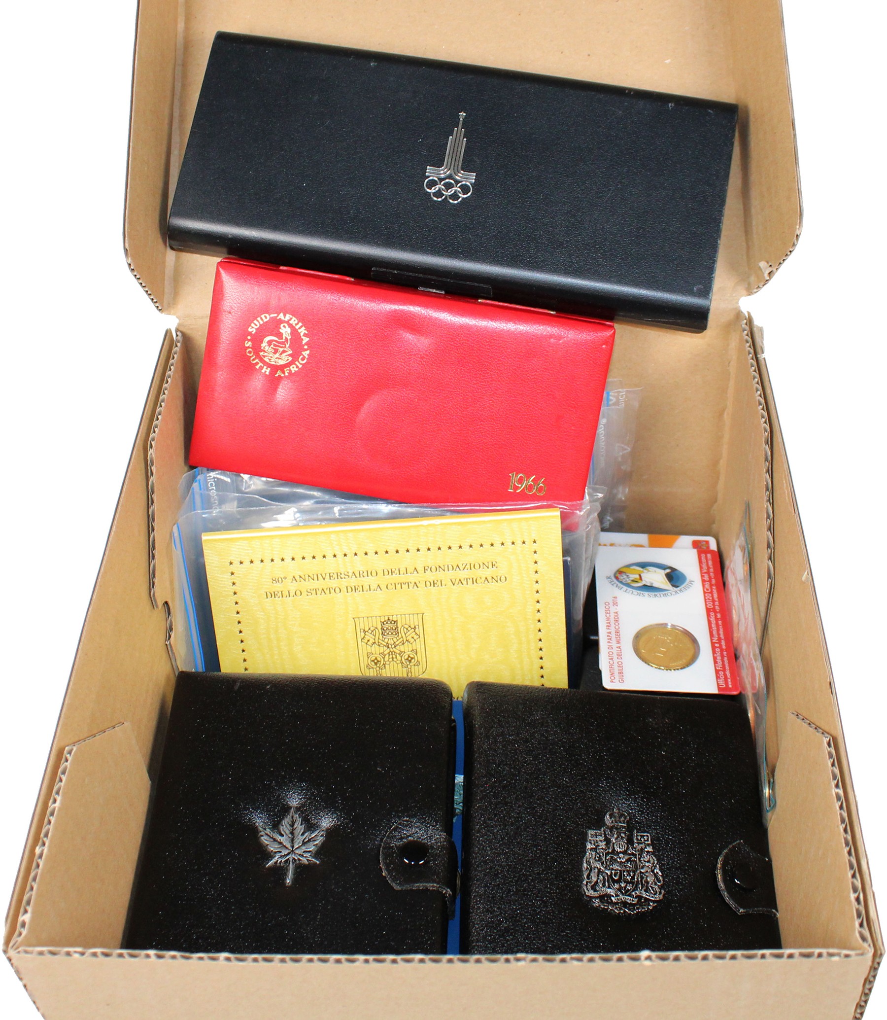 Doos met voornamelijk herdenkingssets wereld o.a. Canada en Rusland en daarbij veel eurosets etc. etc.