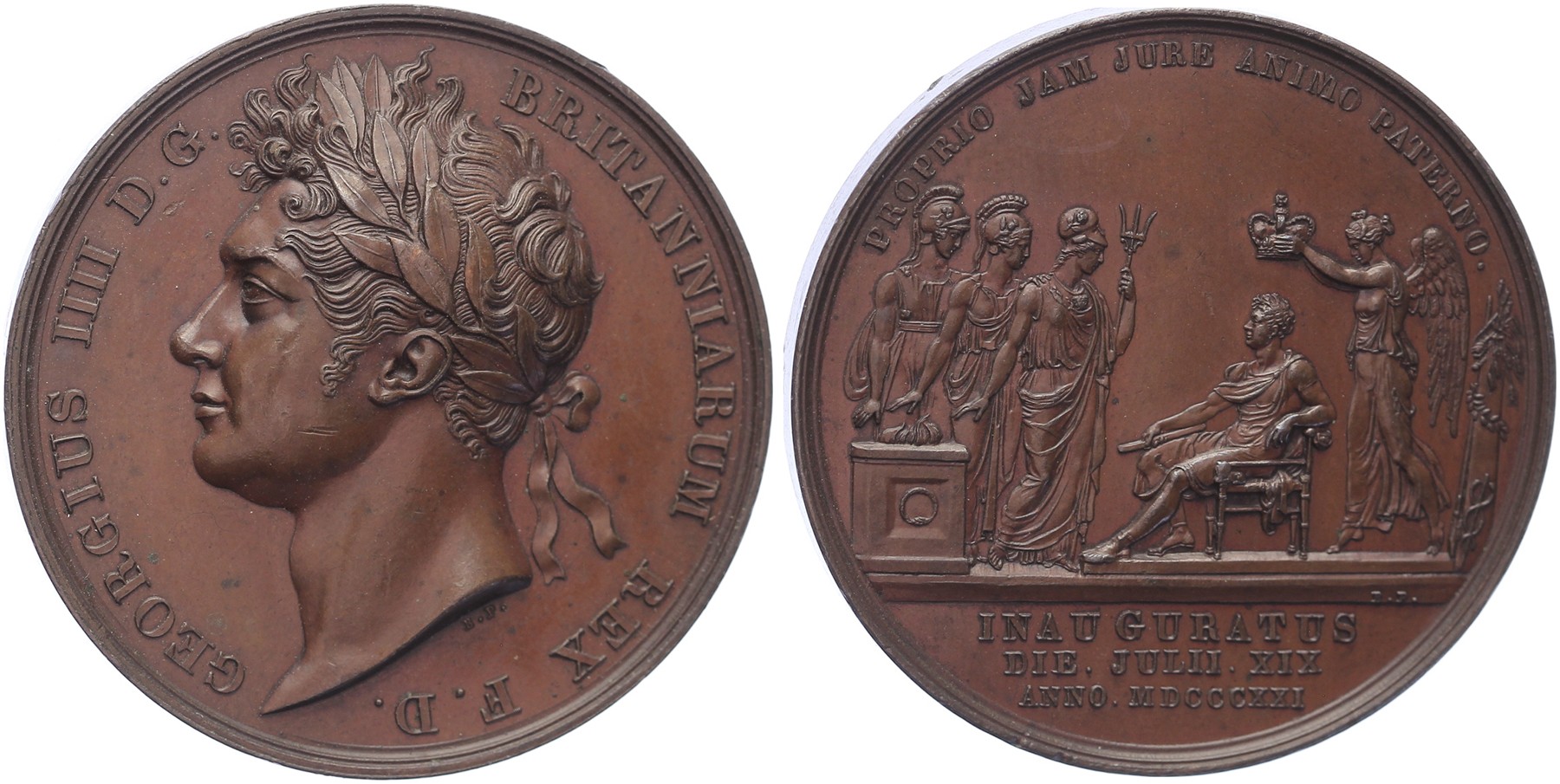1821 Coronation George IV. Laureated head of George left. / Coronation scene.Æ 35. Eimer 1146a; BHM 1070. B. Pistrucci. EF. - Purchased from Karel de Geus Muntveilingen, Januari 2003, auction 15, lot 1048.