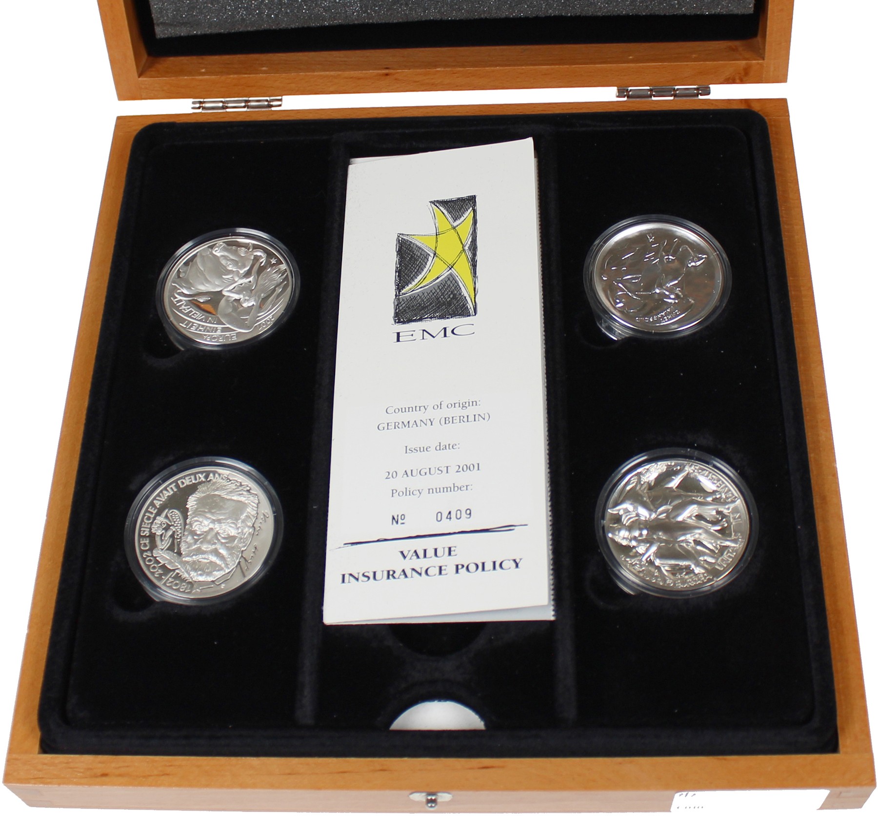 Luxe kist met mooie zilveren penningen afkomstig uit 10 Europese landen. Een uitgifte van de European Medal Club. Netto zilver: 431,6 gram. Met certificaat. Proof.