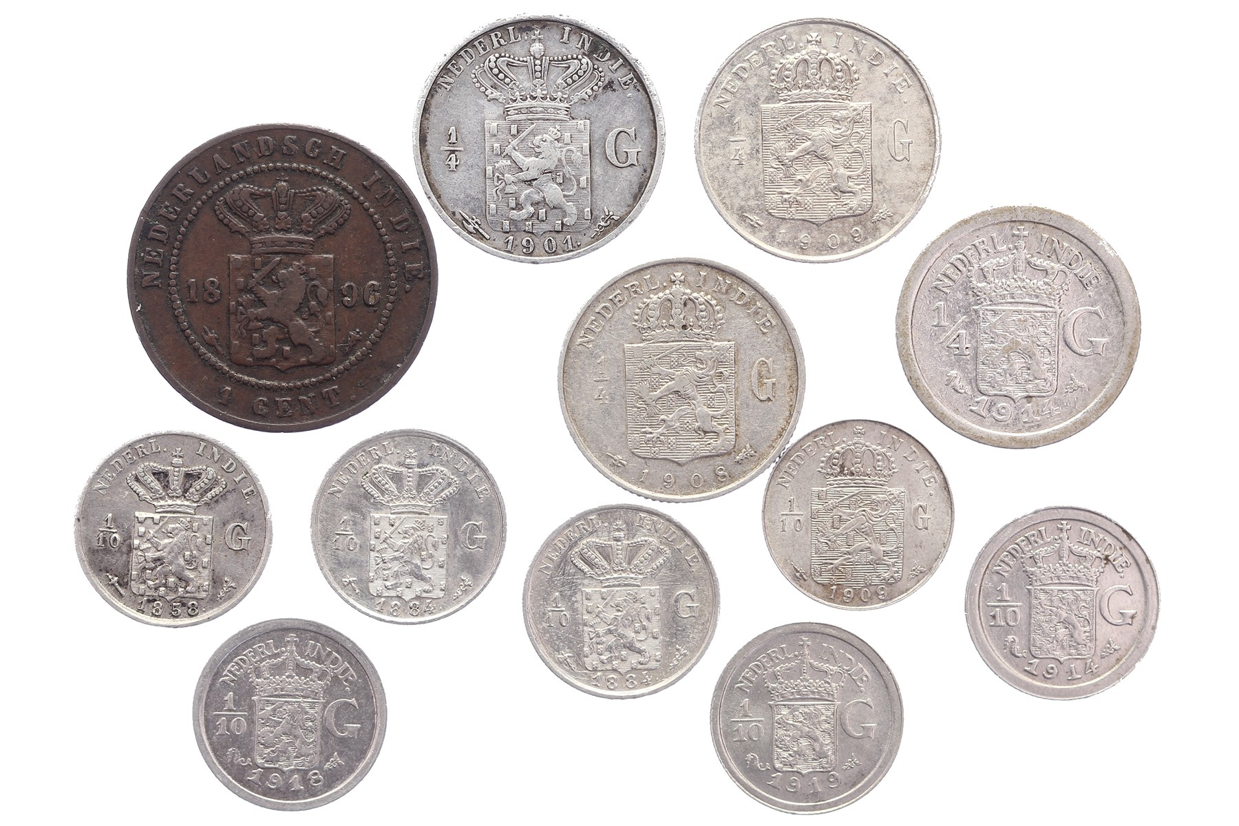 Blikje met leuk lot (12 stuks) Nederlands-Indië, ook betere en kwaliteit. Specificatie bij lot. Ruim zeer fraai en beter!