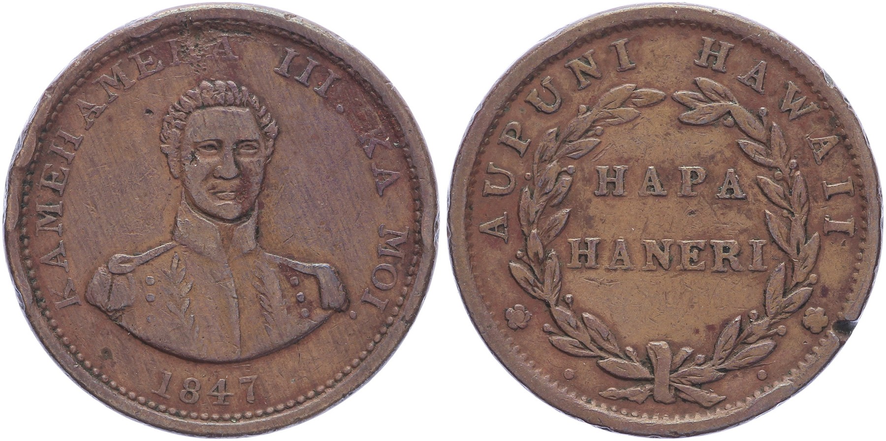 1 Cent 1847. KM 1d. Lichte randschade. 7 and 8 berries. VF.