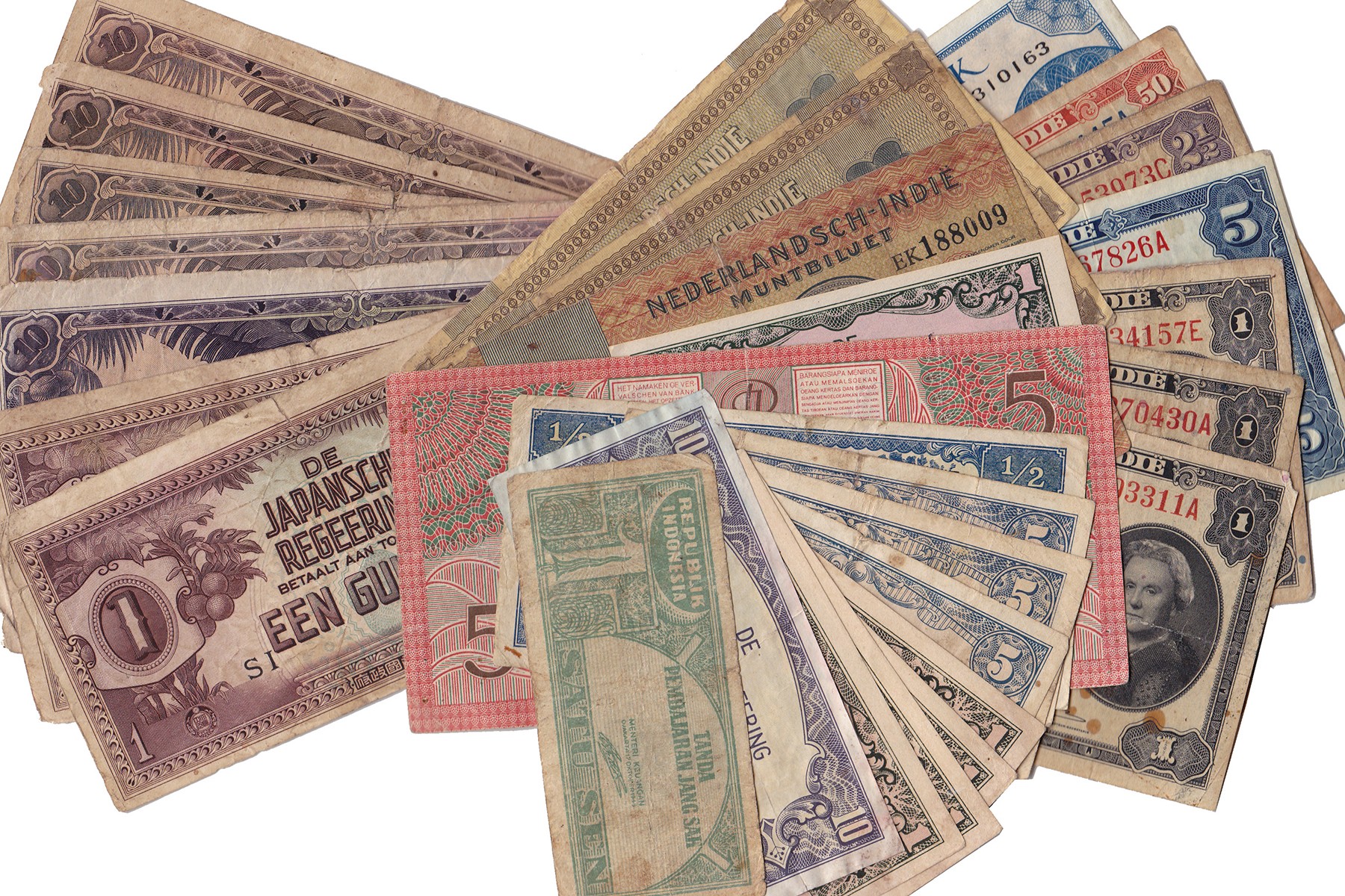 Lot (32) Nederlands-Indië en Japanse Regeering. Onuitgezocht in matige kwaliteit.