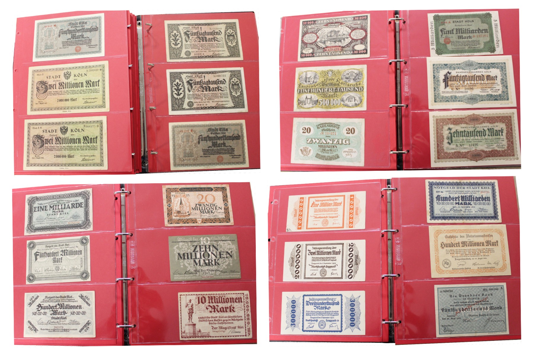 Rood Importa-album met ca. 100 stuks betere noodbiljetten van Duitsland (Ho – L). Allen verschillend. Dit album maakt deel uit van een grotere collectie bestaande uit 8 kavels.