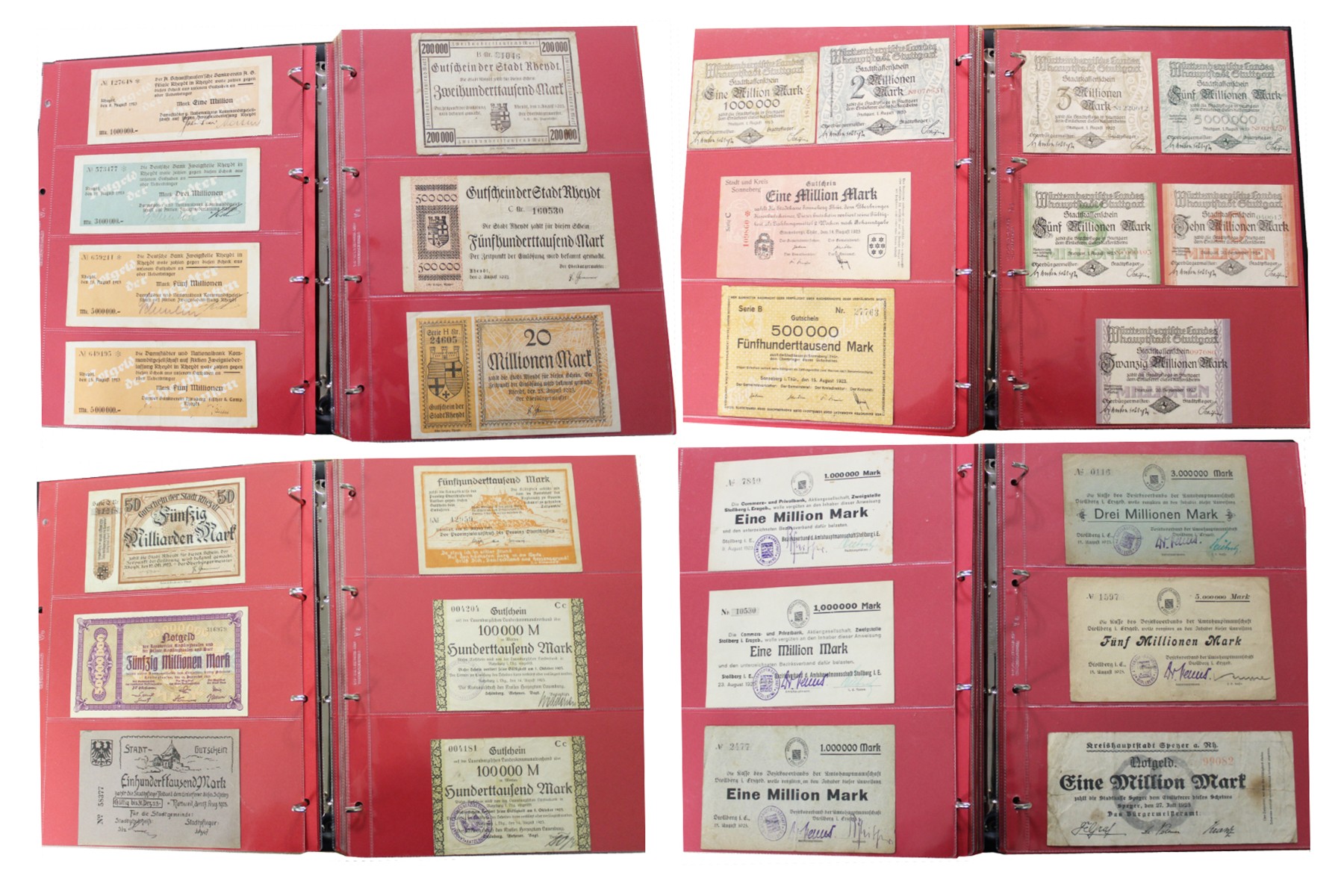 Bruin Importa-album met ca. 90 stuks betere noodbiljetten van Duitsland (Ra – S). Allen verschillend. Dit album maakt deel uit van een grotere collectie bestaande uit 8 kavels.